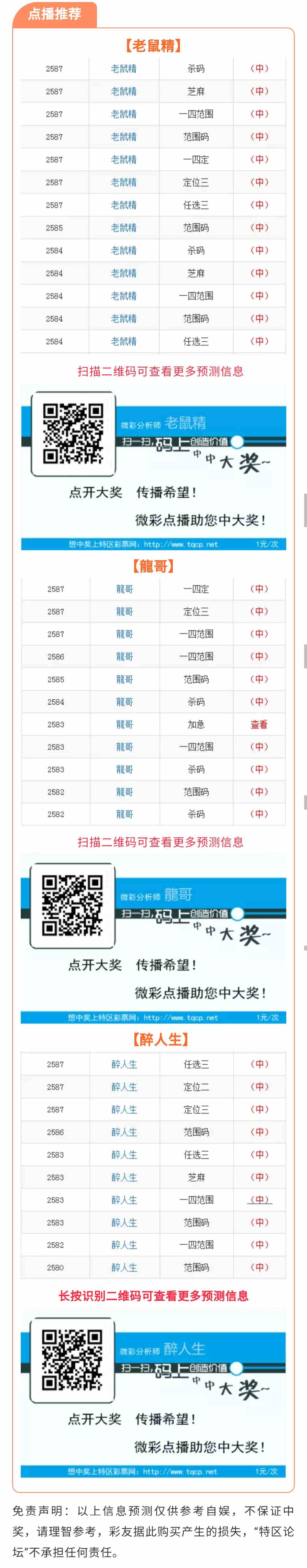 【点播推荐】2588期推荐“老鼠精士”“龍哥”“醉人生”3位分析师
