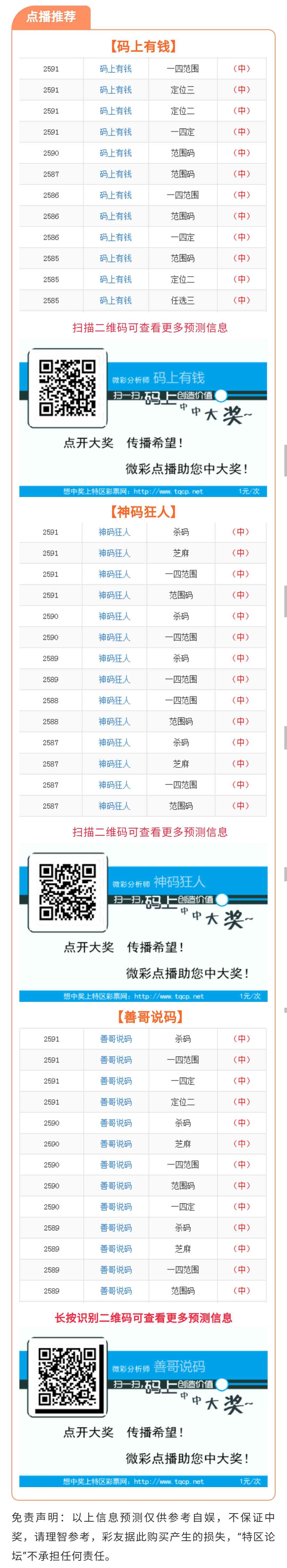 【点播推荐】2592期推荐“码上有钱”“神码狂人”“善哥说码”3位分析师