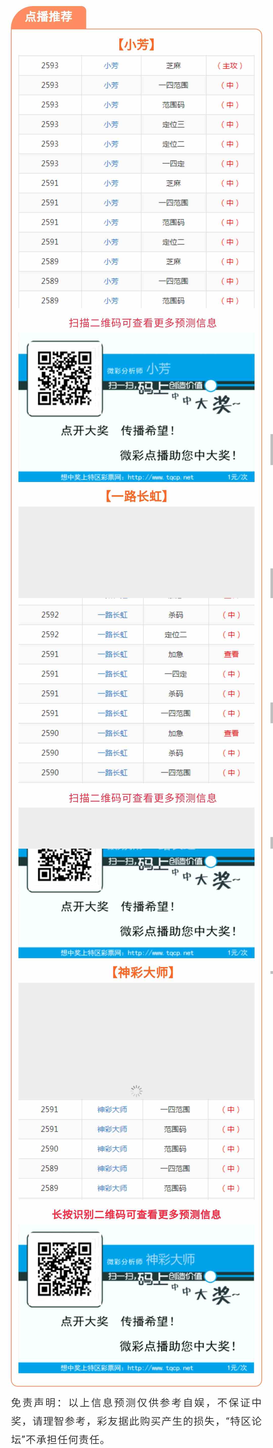 【点播推荐】2594期推荐“小芳”“一路长虹”“神彩大师”3位分析师