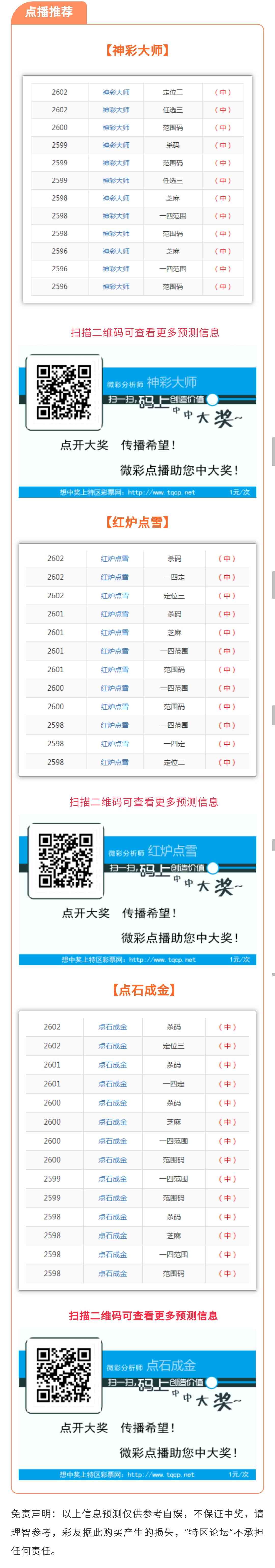 【点播推荐】2603期推荐“神彩大师”“红炉点雪”“点石成金”3位分析师