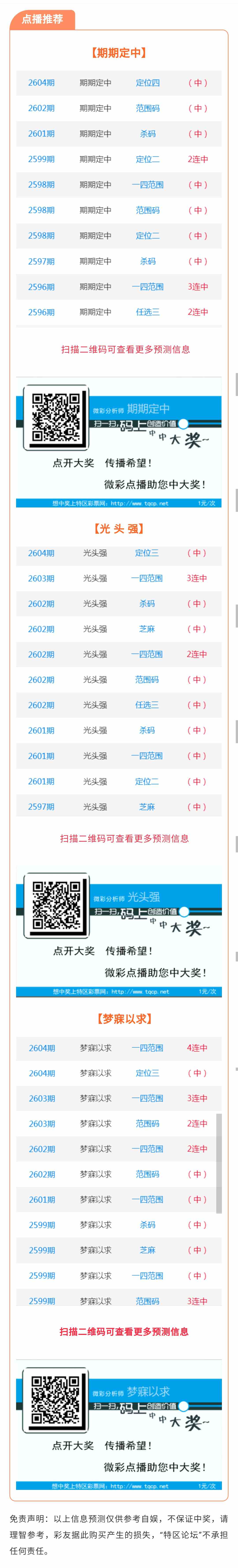 【点播推荐】2605期推荐“期期定中”“光头强”“梦寐以求”3位分析师