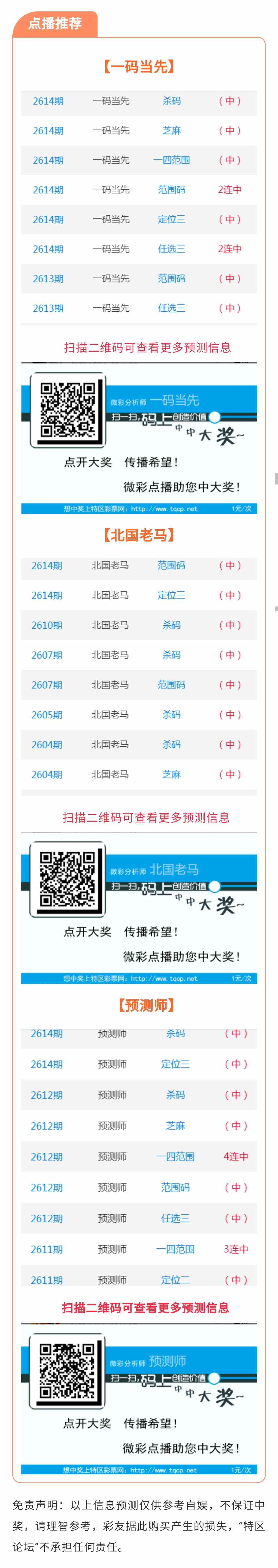 【点播推荐】2615期推荐“一码当先”“北国老马”“预测师”3位分析师