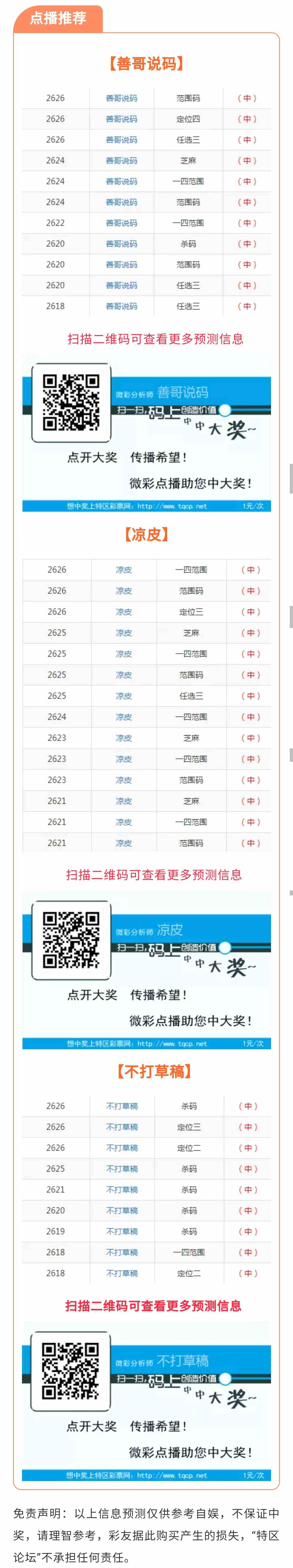 【点播推荐】2627期推荐“善哥说码”“凉皮”“不打草稿”3位分析师