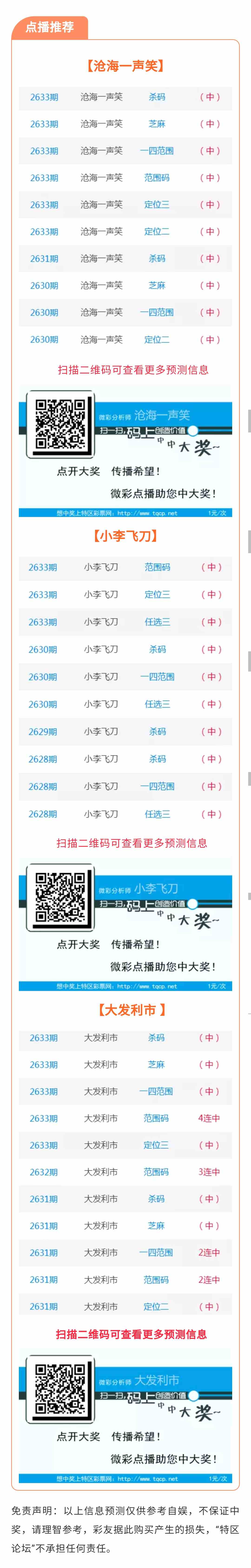 【点播推荐】2634期推荐“沧海一声笑”“小李飞刀”“大发利市”3位分析师