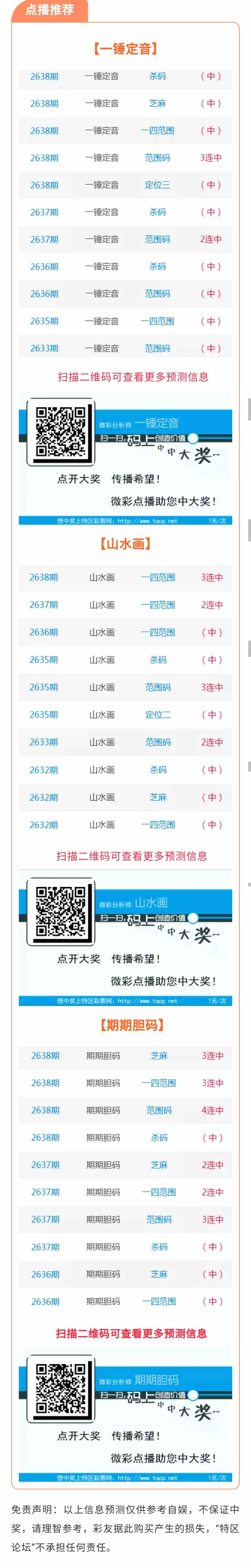 【点播推荐】2639期推荐“一锤定音”“山水画”“期期胆码”3位分析师