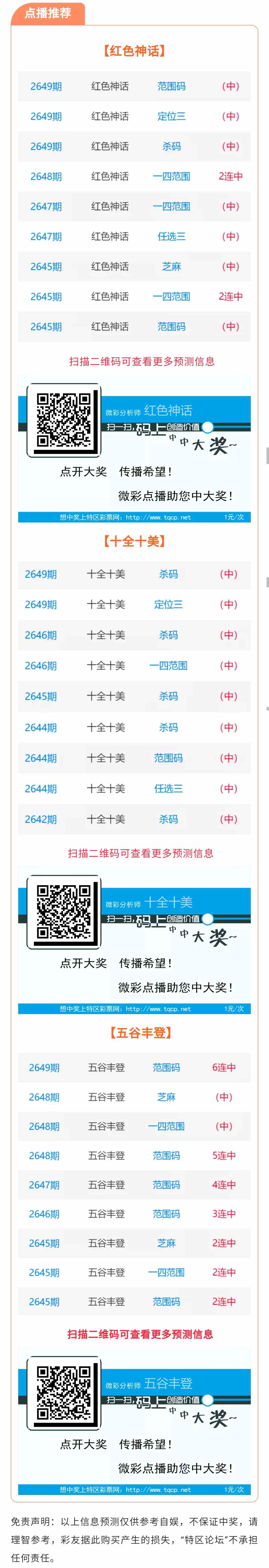 【点播推荐】2650期推荐“红色神话”“十全十美”“五谷丰登”3位分析师