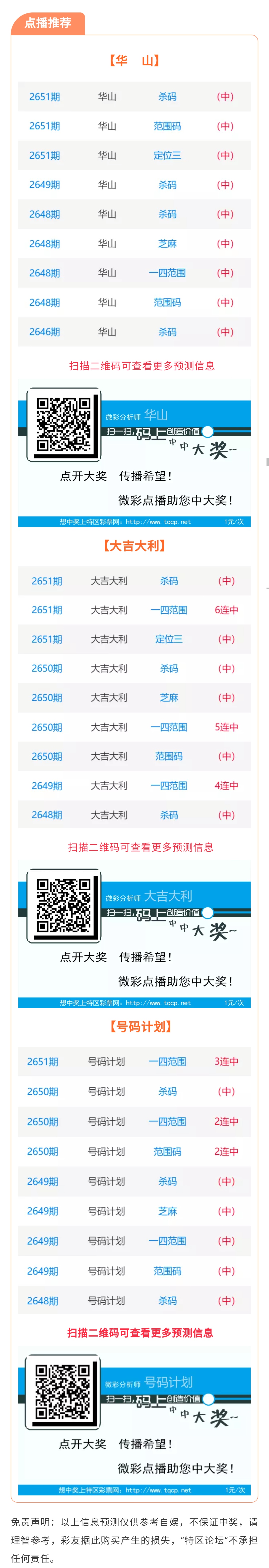 【点播推荐】2652期推荐“华山”“大吉大利”“号码计划”3位分析师