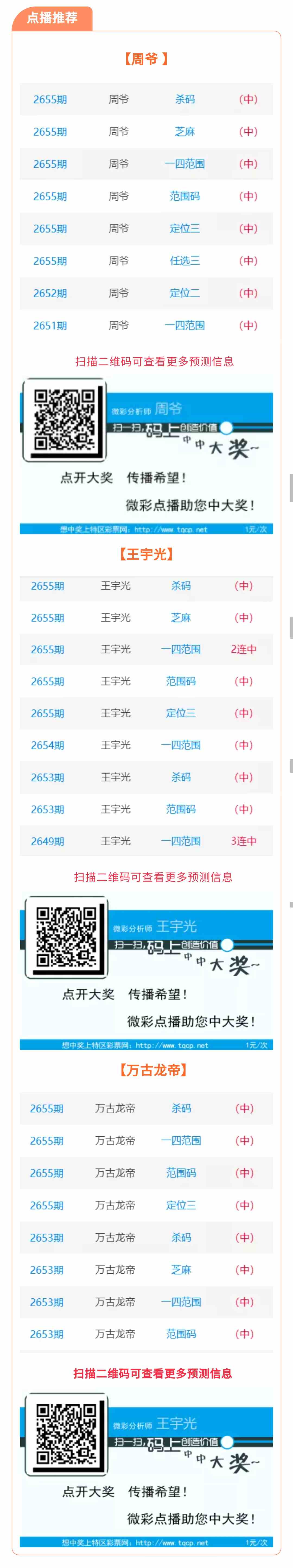 【点播推荐】2656期推荐“周爷”“王宇光”“万古龙帝”3位分析师