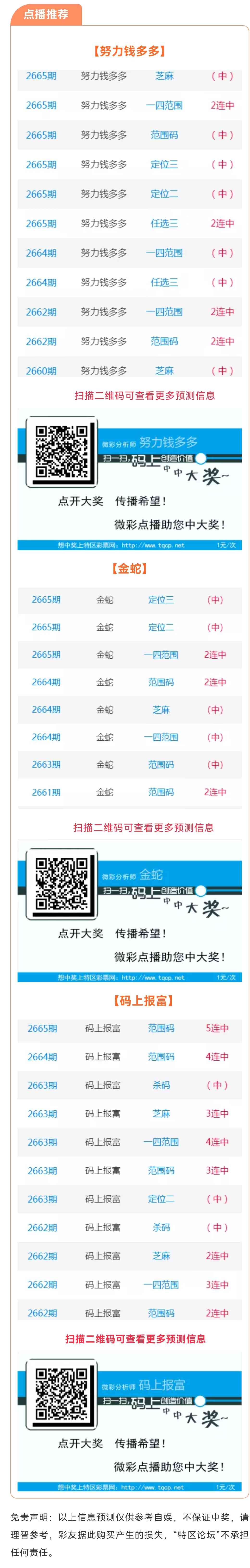 【点播推荐】2666期推荐“努力钱多多”“金蛇”“码上报富”3位分析师