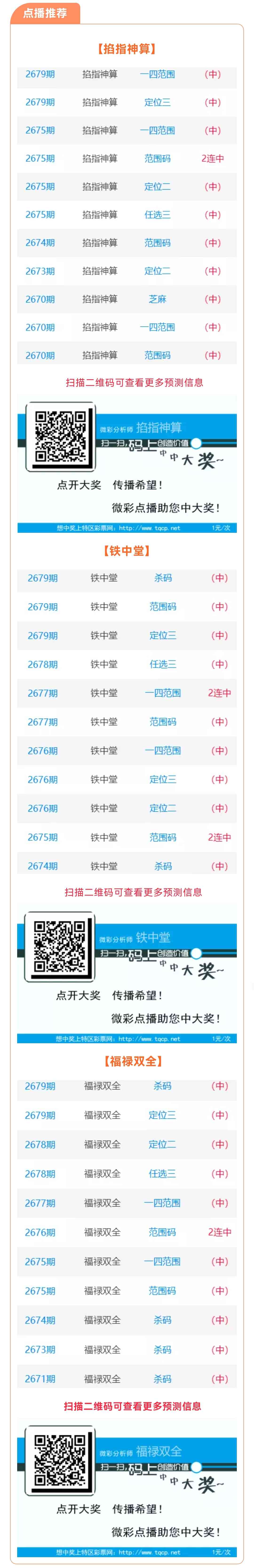 【点播推荐】2680期推荐“掐指神算”“铁中堂”“福禄双全”3位分析师