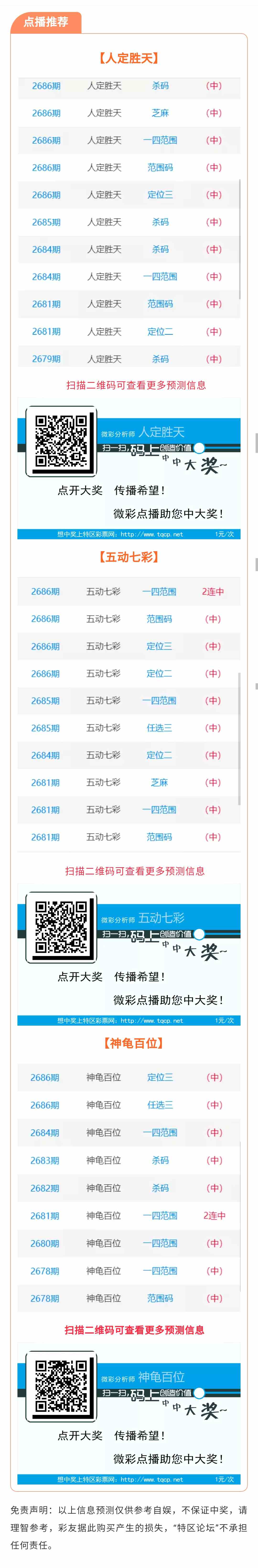 【点播推荐】2687期推荐“人定胜天”“五动七彩”“神龟百位”3位分析师