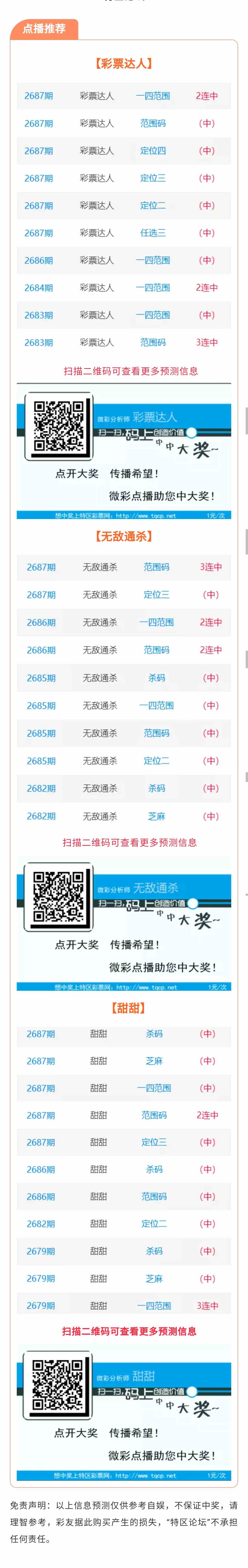 【点播推荐】2688期推荐“彩票达人”“***通杀”“甜甜”3位分析师
