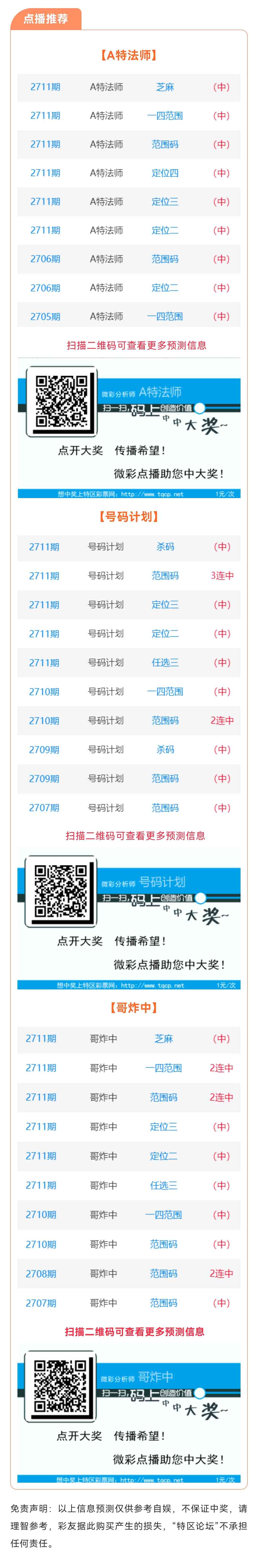 【点播推荐】2712期推荐“A特法师”“号码计划”“哥炸中”3位分析师