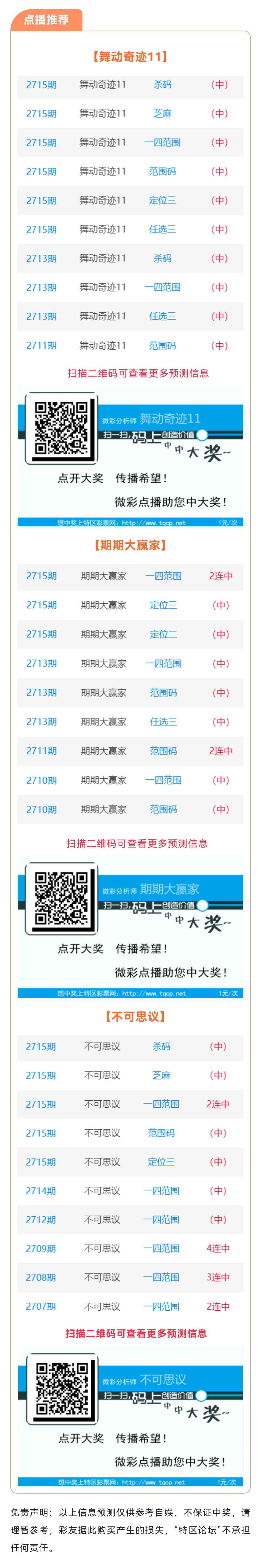 【点播推荐】2716期推荐“舞动奇迹11”“期期大赢家”“不可思议”3位分析师