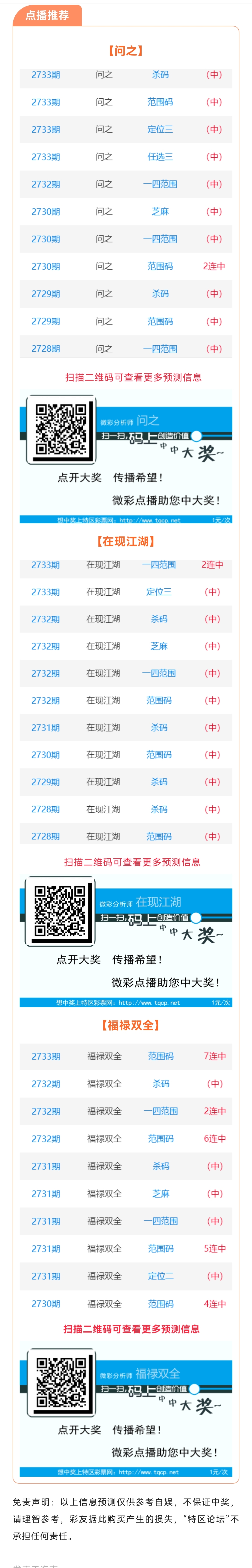 【点播推荐】2734期推荐“问之”“在现江湖”“福禄双全”3位分析师