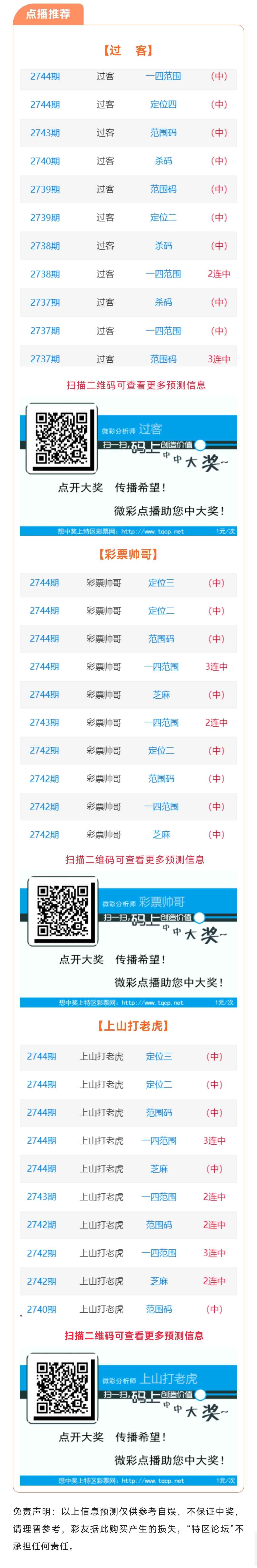【点播推荐】2745期推荐“过客”“彩票帅哥”“上山打老虎”3位分析师