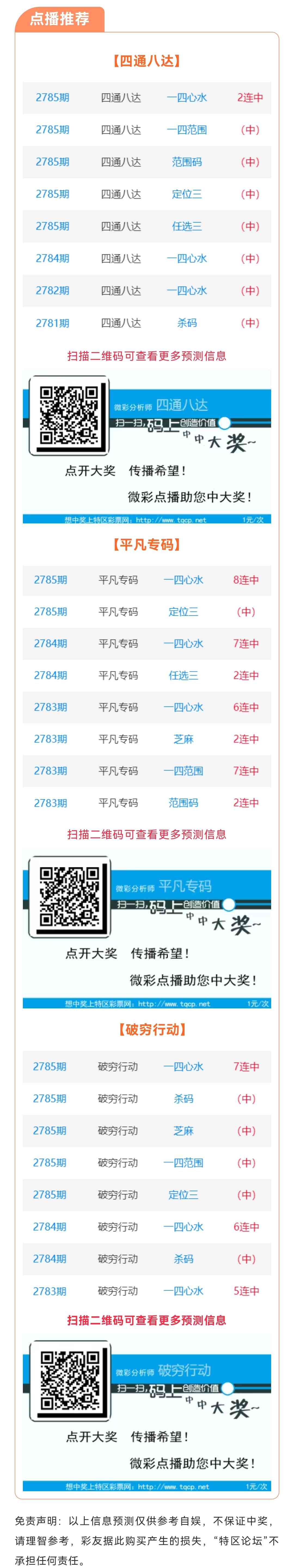 【点播推荐】2786期推荐“四通八达”“平凡专码”“破穷行动”3位分析师