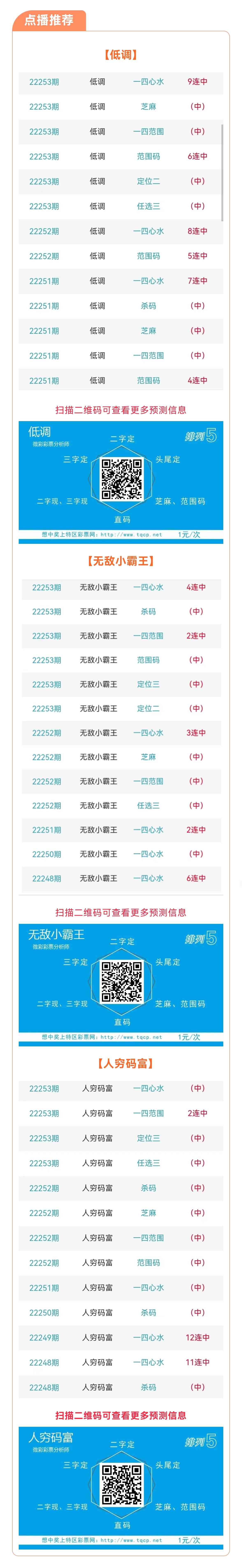 【排列点播推荐】22254期推荐“低调”“无敌小霸王”“人穷码富”3位分析师