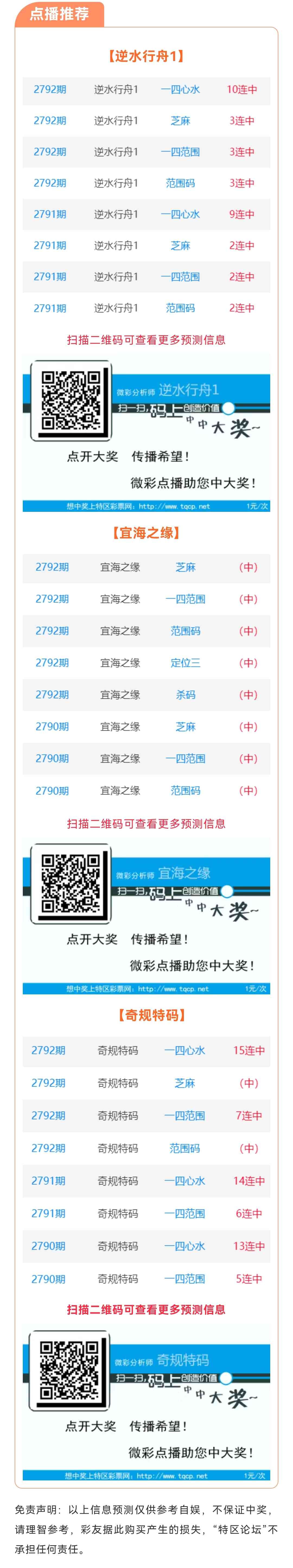 【七星点播推荐】2793期推荐“逆水行舟1”“宜海之缘”“奇规特码”3位分析师