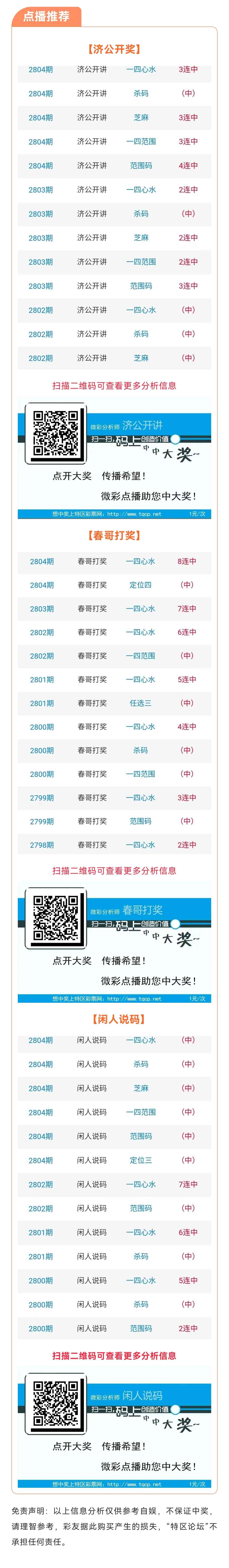 【七星点播推荐】2805期推荐“济公开奖”“春哥打奖”“闲人说码”3位分析