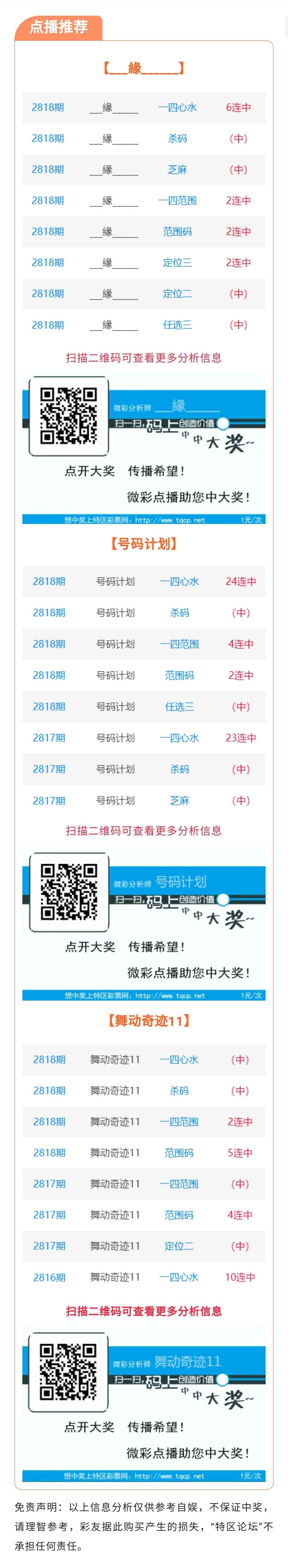 【七星点播推荐】2819期推荐“___緣______”“号码计划”“舞动奇迹11”3位分析
