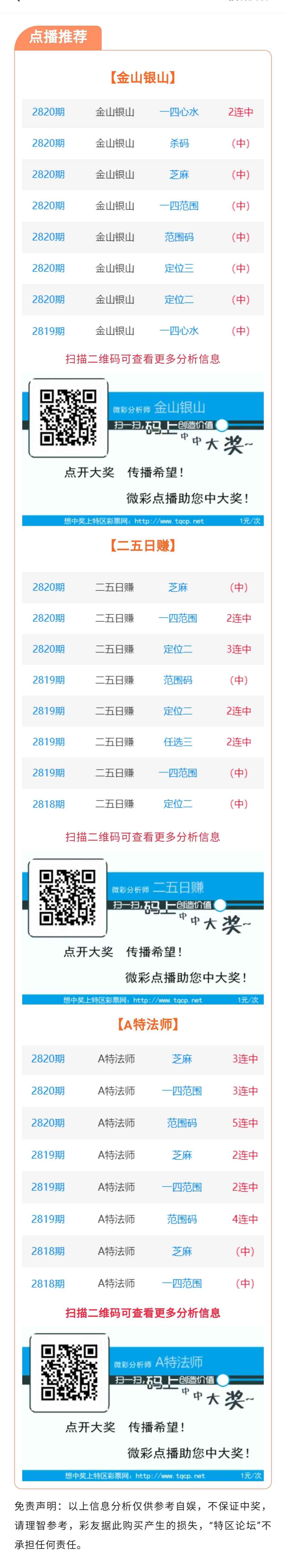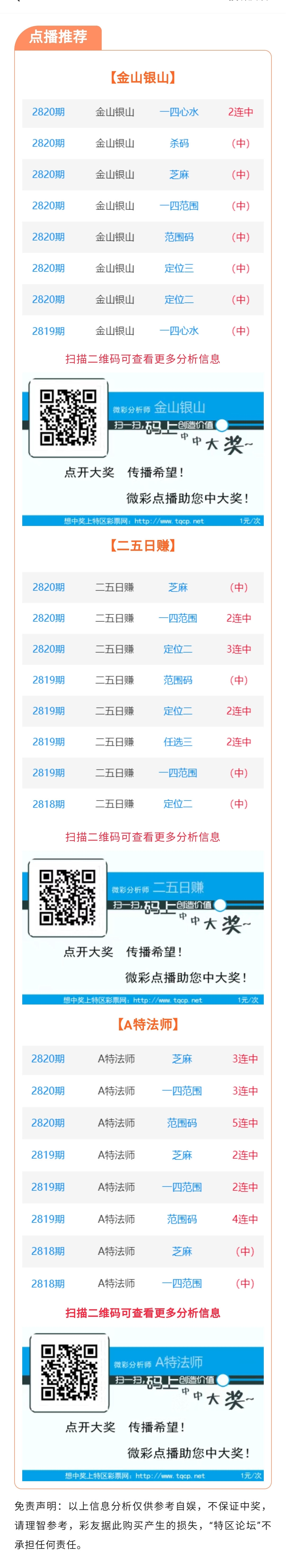【七星点播推荐】2821期推荐“金山银山”“二五日赚”“A特法师”3位分析