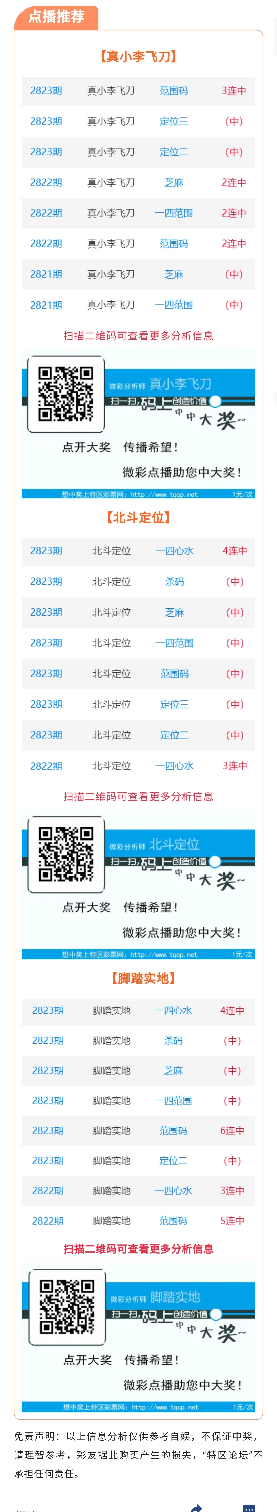 【七星点播推荐】2824期推荐“真小李飞刀”“北斗定位”“脚踏实地”3位分析