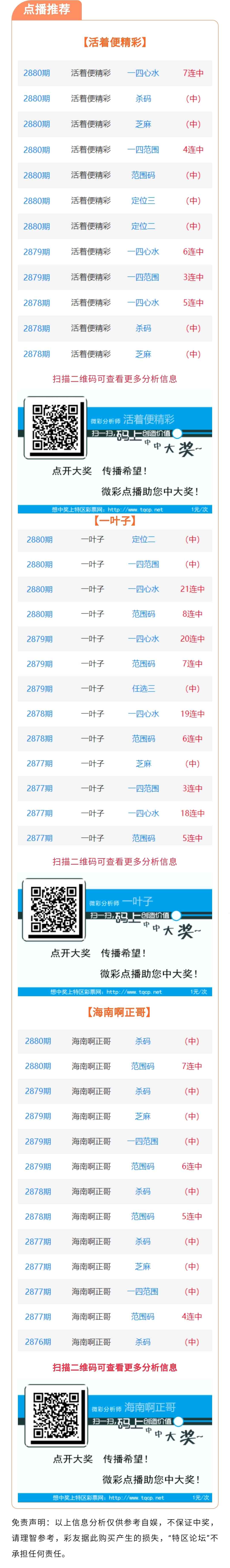 【七星点播推荐】2881期推荐“活着便精彩”“一叶子”“海南啊正哥”3位分析师