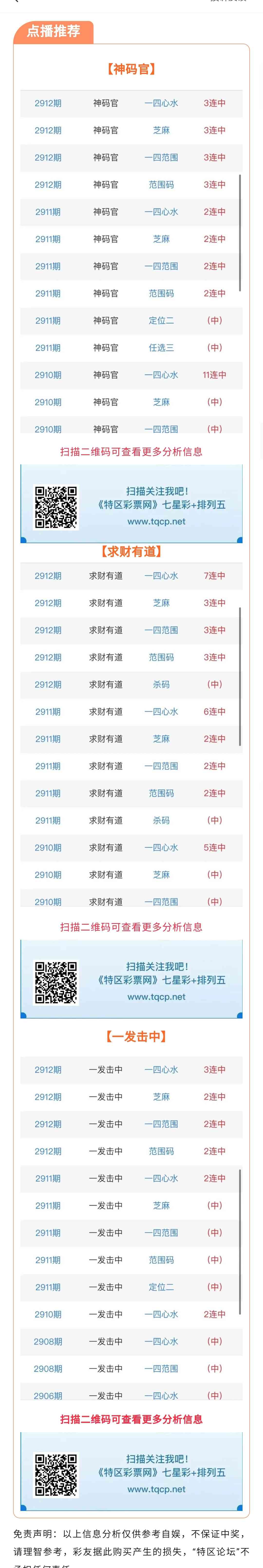 七星彩2913期点播推荐神码官、求财有道和一发击中3位分析师