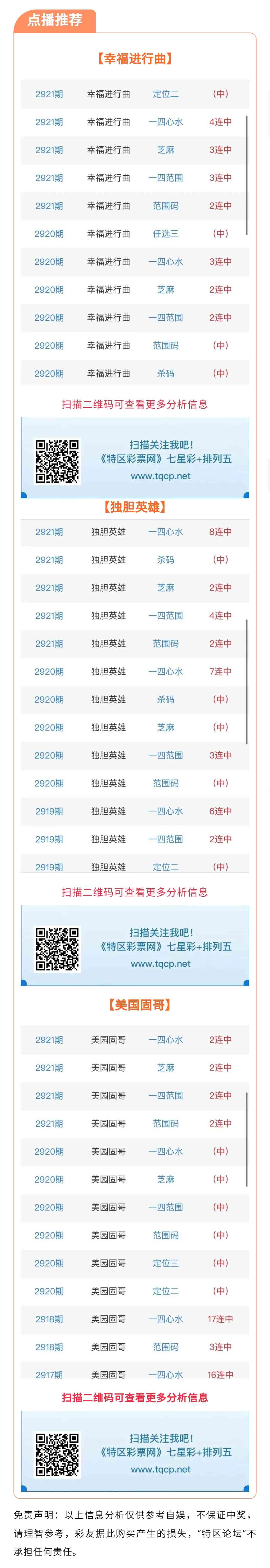 七星彩2922期点播推荐幸福进行曲、独胆英雄和美园固哥 3位分析师