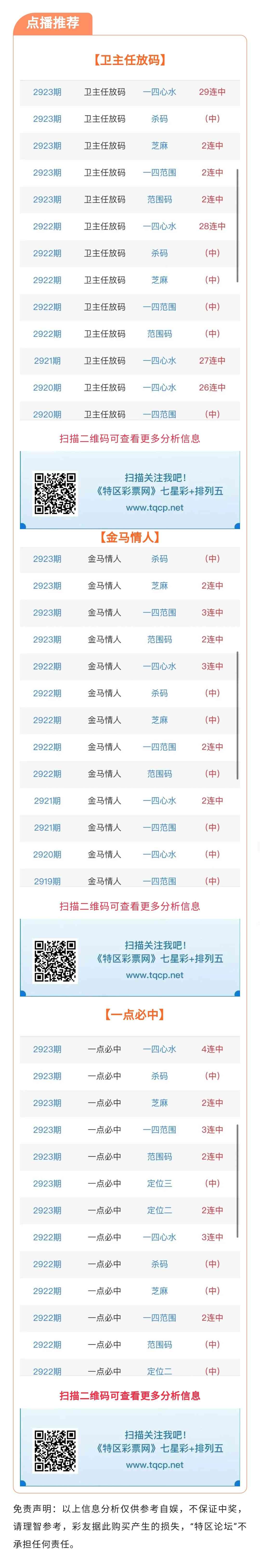 七星彩2924期点播推荐卫主任放码、金马情人和一点必中 3位分析师