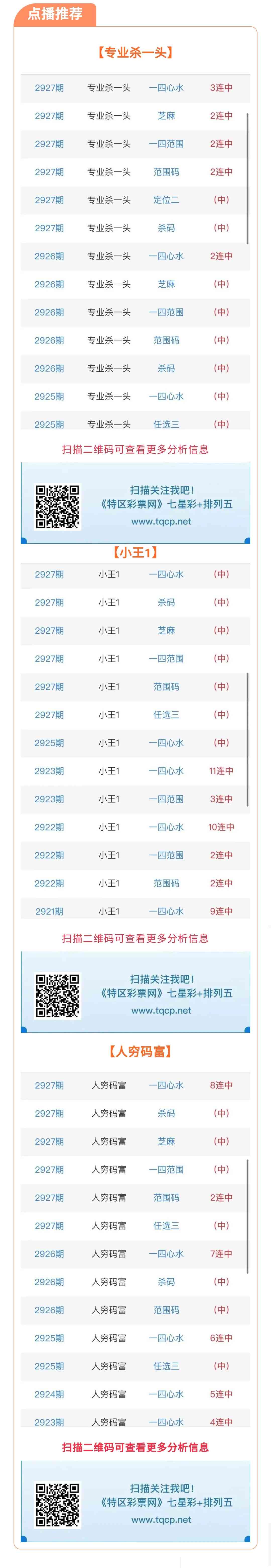七星彩2928期点播推荐专业杀一头、小王1和人穷码富3位分析师