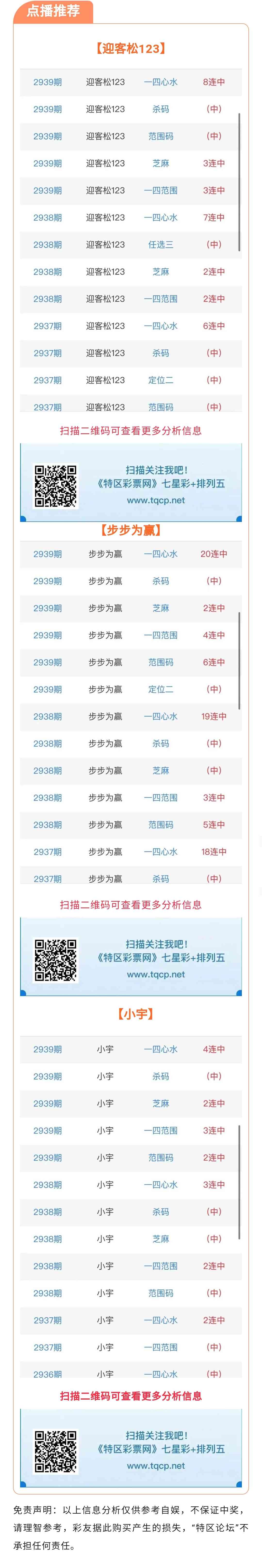 七星彩2940期点播推荐迎客松123、步步为赢和小宇3位分析师