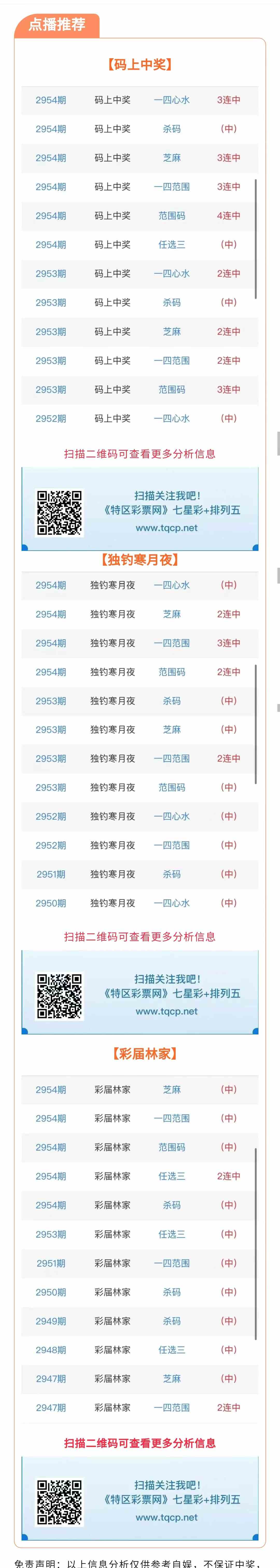 七星彩2955期点播推荐码上中奖、独钓寒月夜和彩届林家3位分析师
