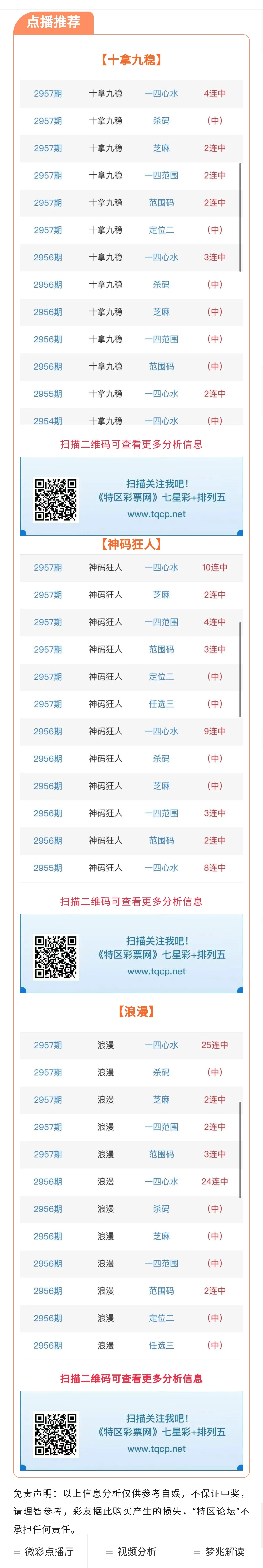 七星彩2958期点播推荐十拿九稳、神码狂人和浪漫3位分析师