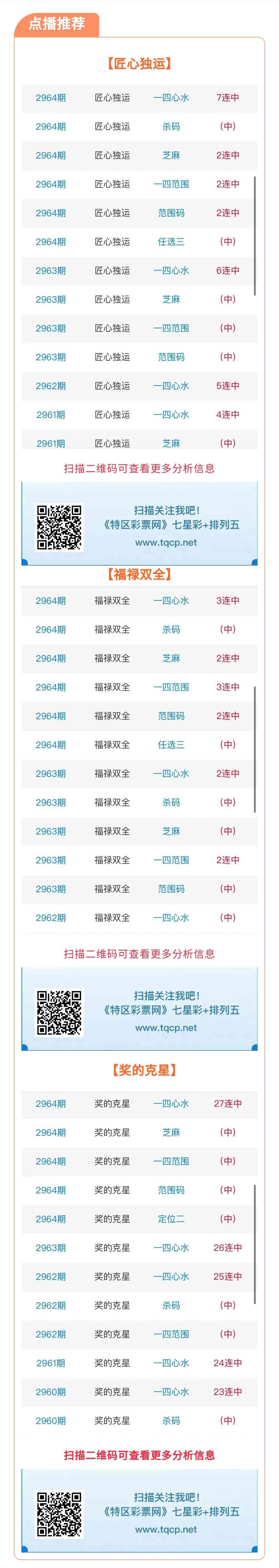 七星彩2965期点播推荐匠心独运、福禄双全和奖的克星3位分析师