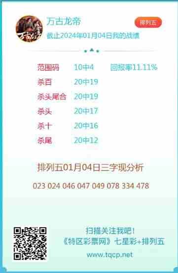 排列五24004期点播推荐万古龙帝、和气生财和圣斗士3位分析师