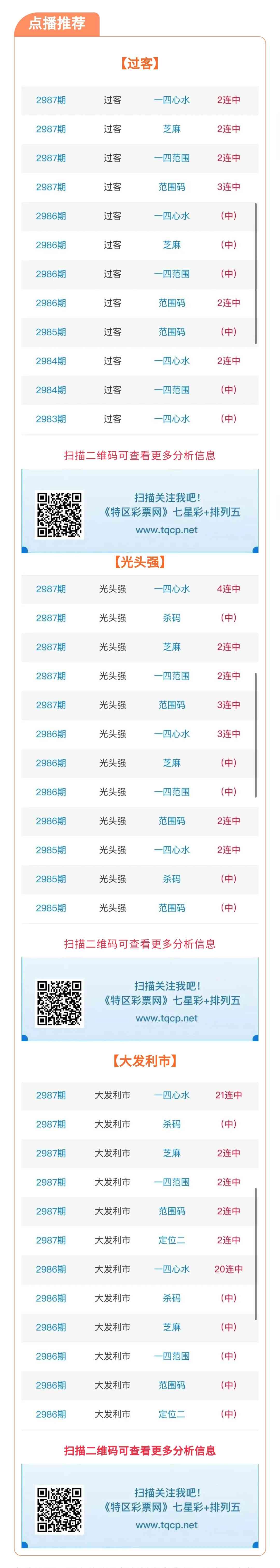 七星彩2988期点播推荐过客、光头强和大发利市3位分析师
