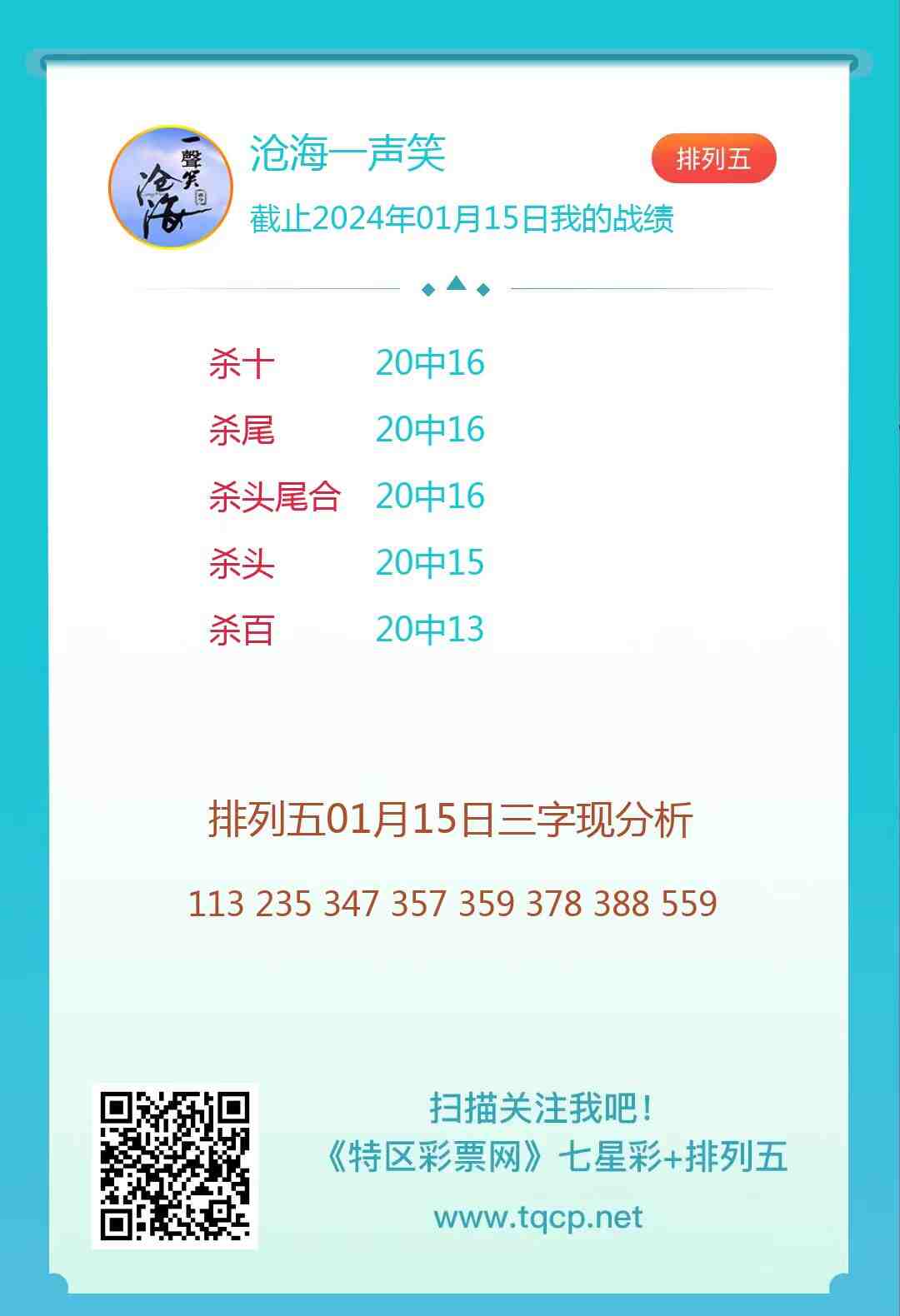 排列五24015期点播推荐九居士、沧海一声笑和财运亨通3位分析师