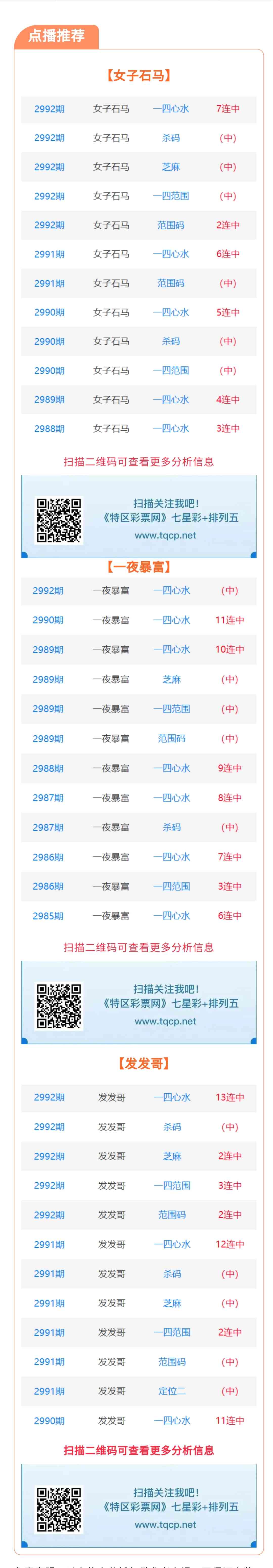 七星彩2993期点播推荐女子石码、一夜暴富和发发哥3位分析师