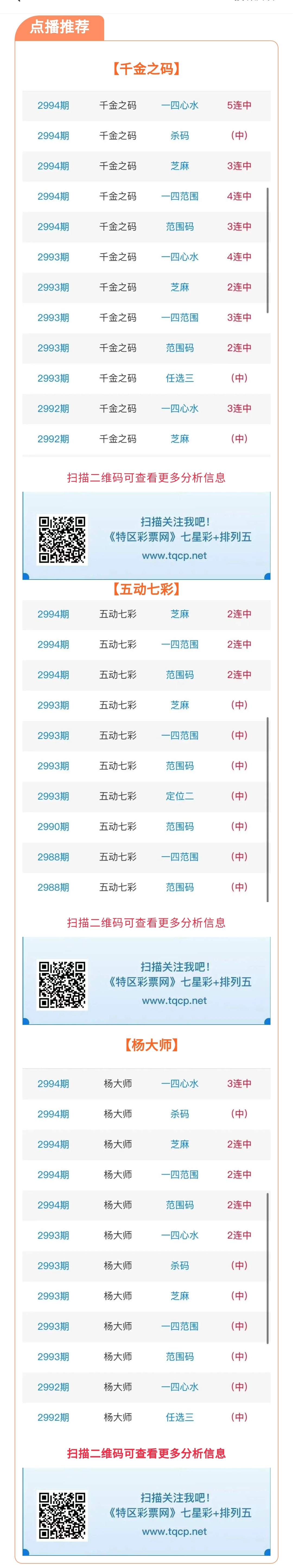 七星彩2995期点播推荐千金之码、无动七彩和杨大师3位分析师