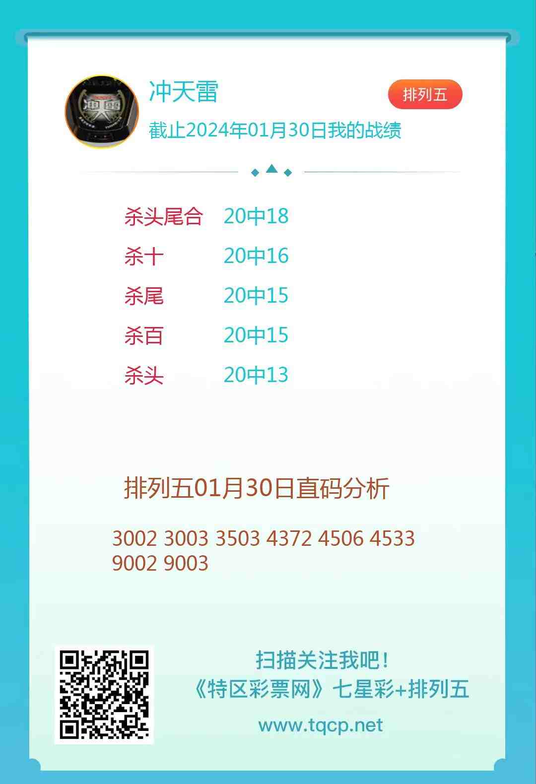 排列五24030期点播推荐光头强、哥炸中和冲天雷3位分析师
