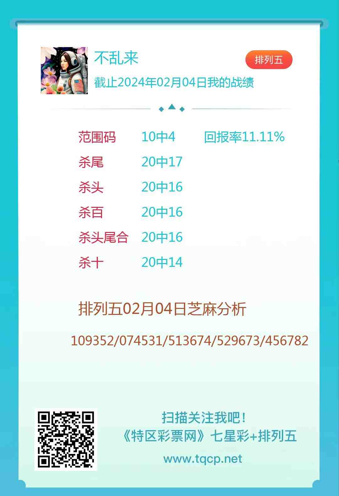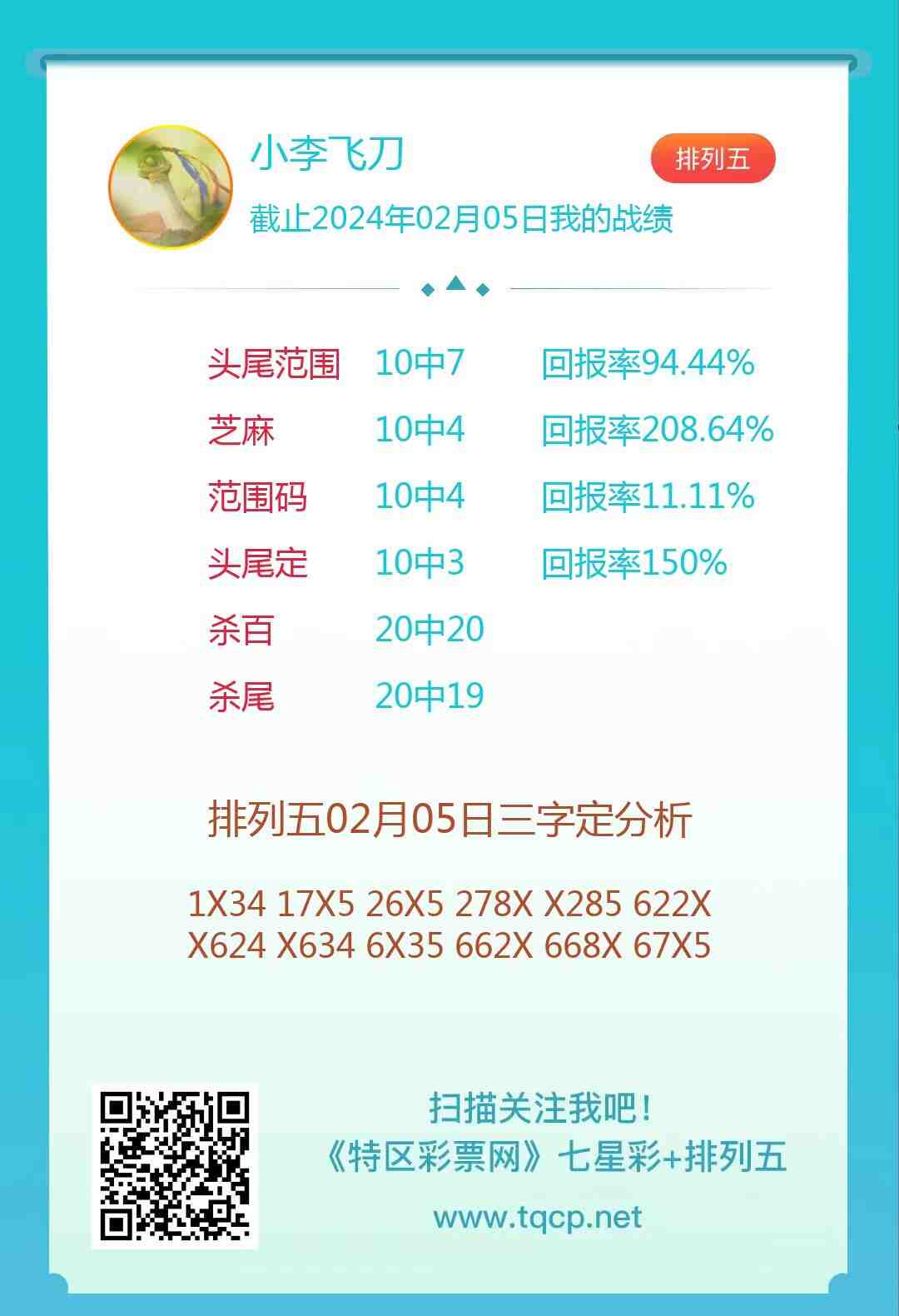 排列五24035期点播推荐不乱来、尾王和小李飞刀3位分析师
