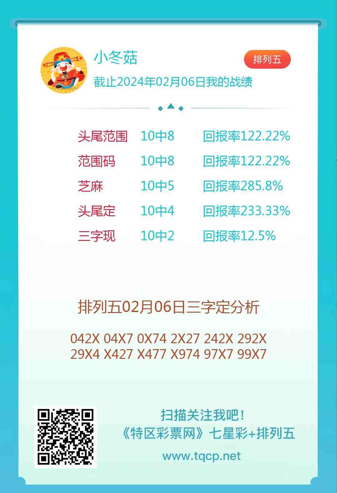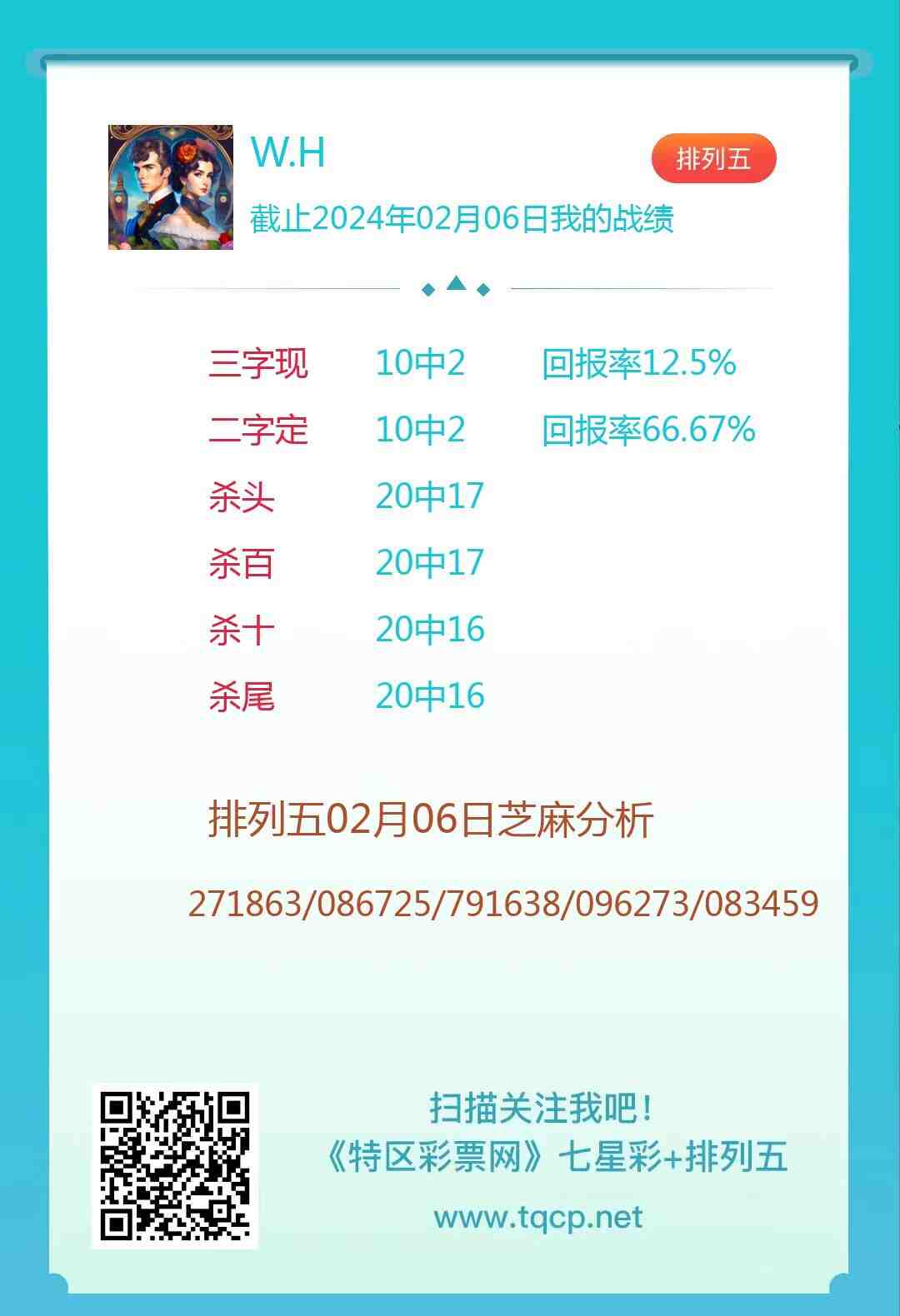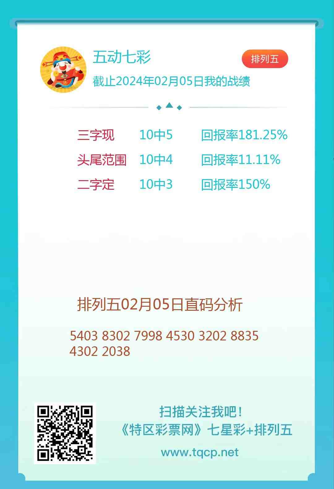 排列五24037期点播推荐五动七彩、W.H和小冬菇3位分析师