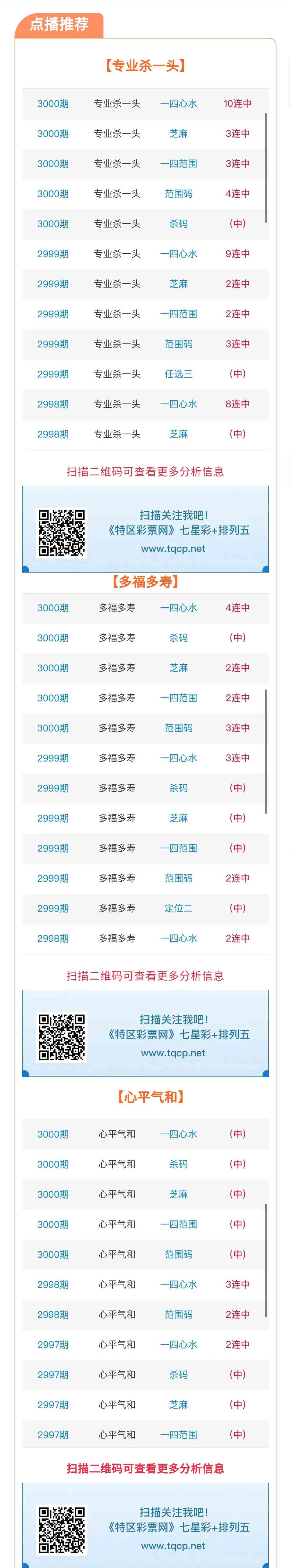 七星彩3001期点播推荐专业杀一头、多福多寿和心平气和3位分析师