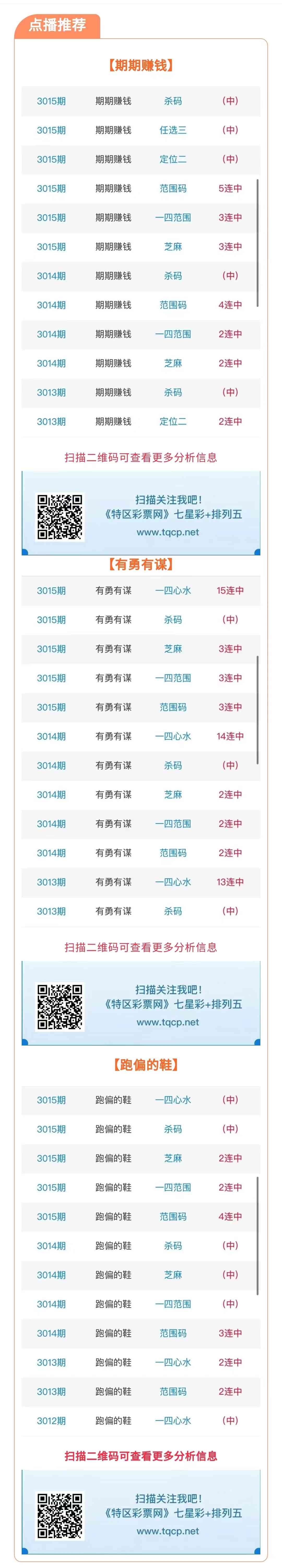 七星彩3016期点播推荐期期赚钱、有勇有谋和跑偏的鞋 3位分析师