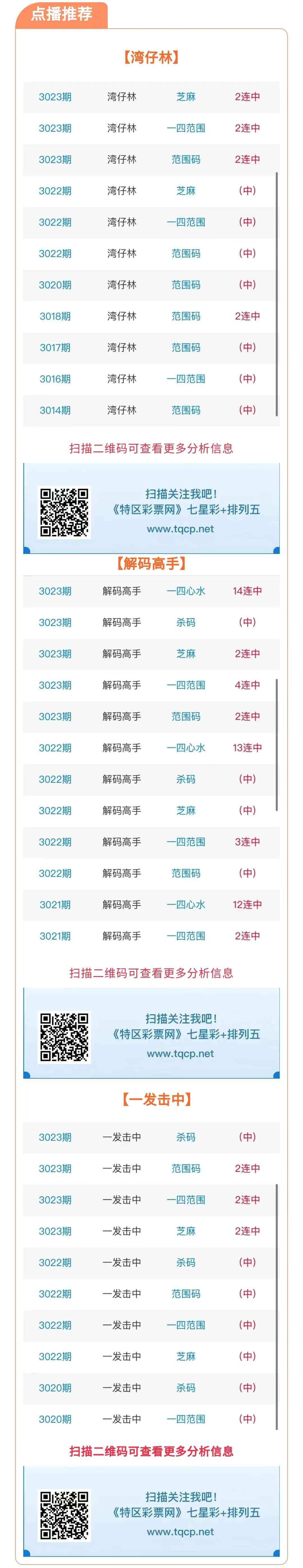 七星彩3024期点播推荐湾仔林、解码高手和一发击中 3位分析师