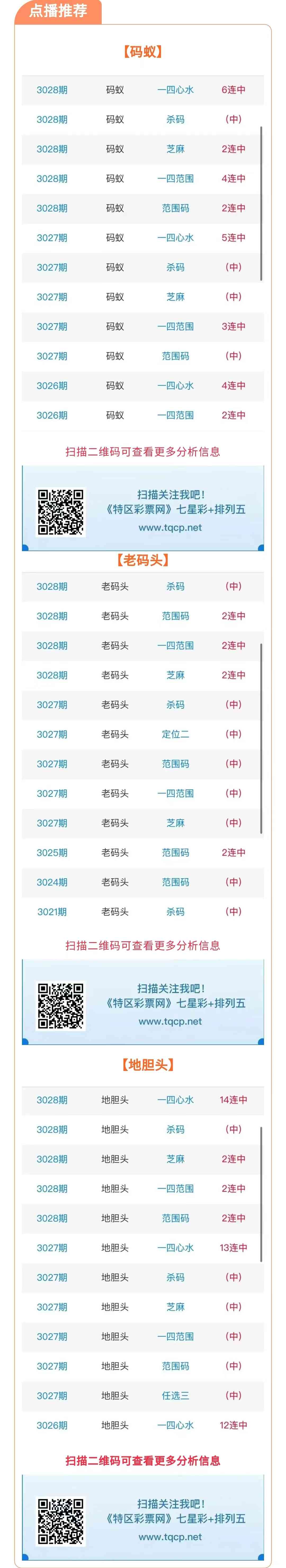 七星彩3029期点播推荐蚂蚁、老码头和地胆头 3位分析师