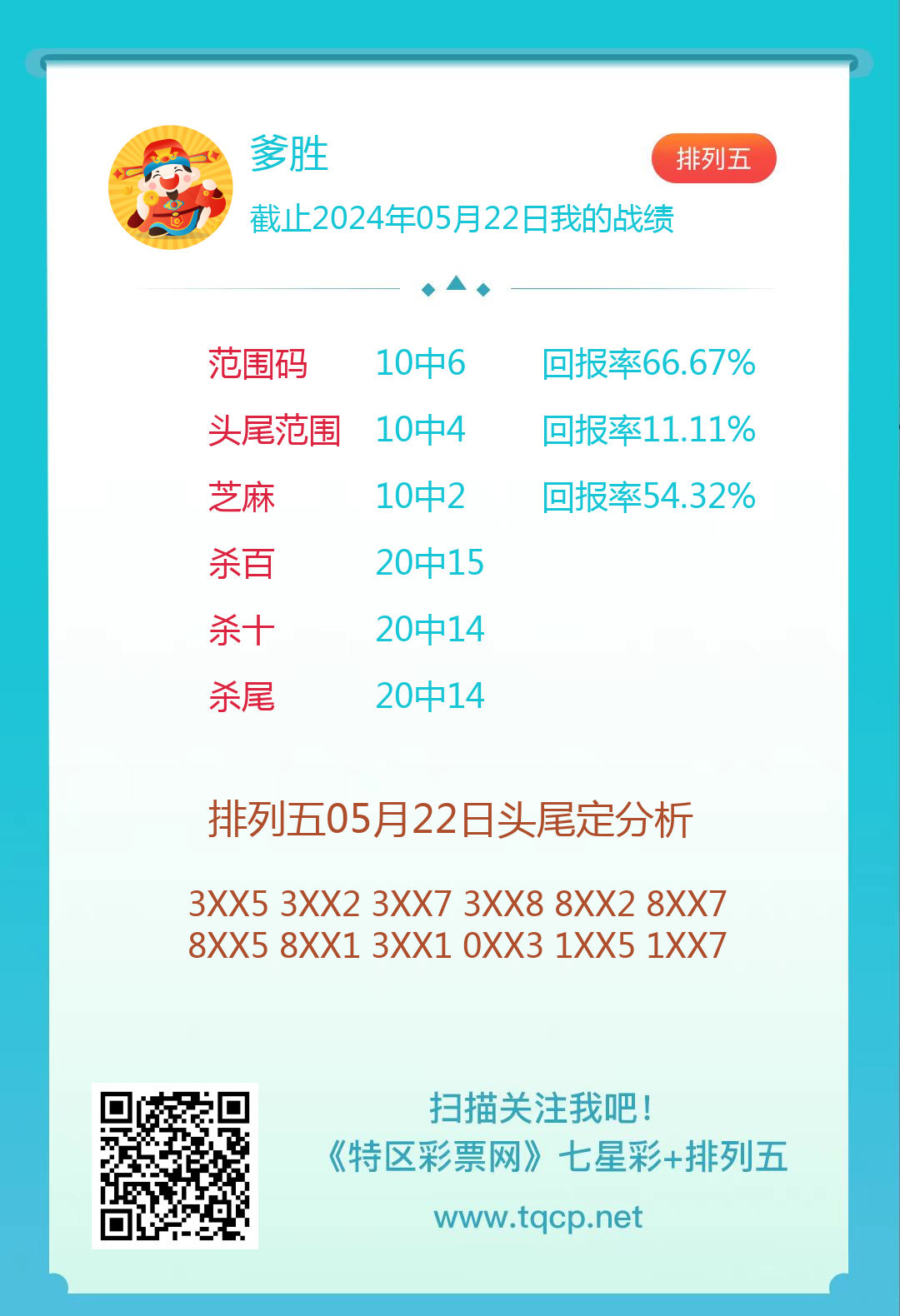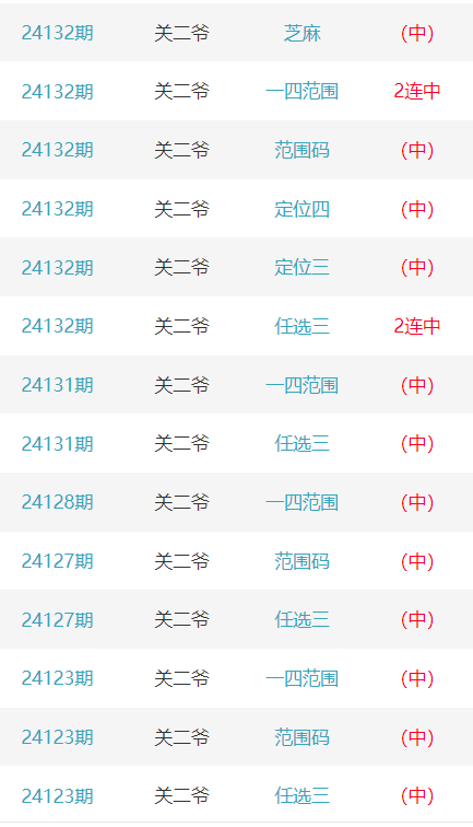 排列五24133期点播推荐关二爷、爹胜和春华秋实 3位分析师