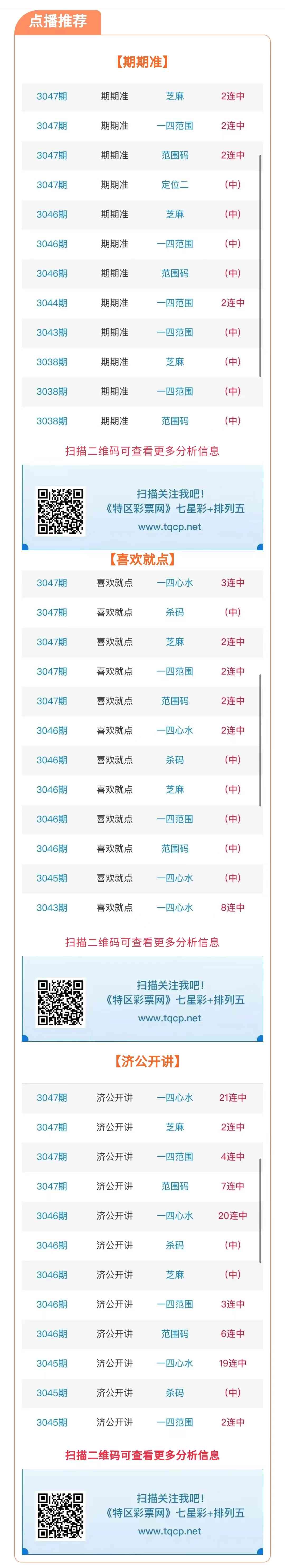七星彩3048期点播推荐期期准、喜欢就点和济公开讲 3位分析师